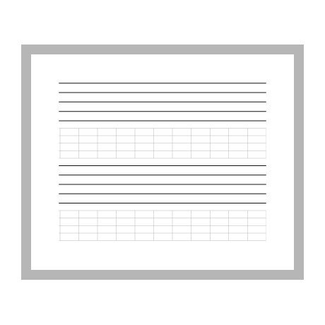 Notenlinien mit Textlinien, Zeilenabstand 2.5mm, ringsum abgesetzter Rand.