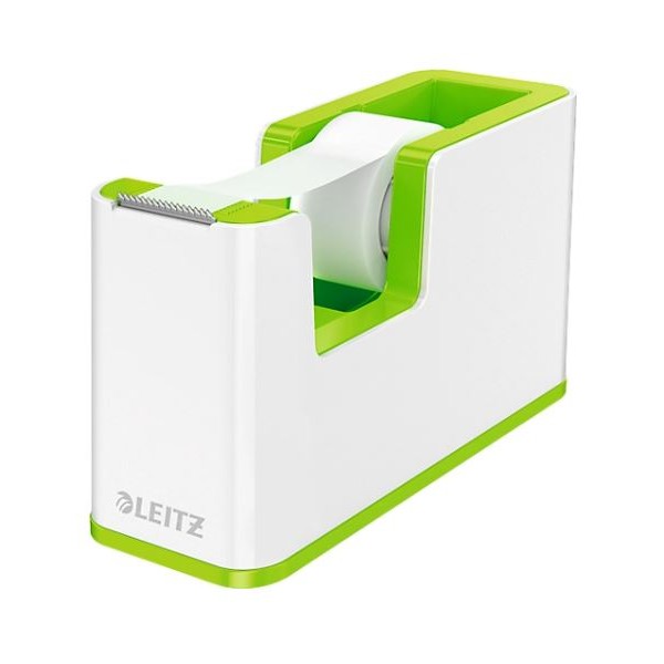 Tischabroller mit optimiertem Wellenmesser für sauberen Schnitt, Gehäuse aus 100% recyceltem PS. Stop Haft-Pad für sicheren Stand auf dem Tisch, abwaschbar um die Haltbarkeit zu reaktivieren, ohne Rückstände repositionierbar. Für Klebeband bis 19mm / 33m