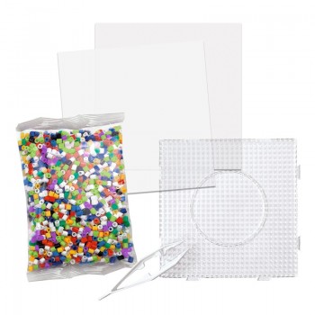 Inhalt: 2000 Bügelperlen sortiert in verschiedenen Farben, 1 Steckplatte 14.8x14.8cm,