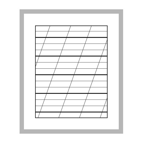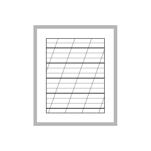 3mm liniert, mit Schräglinien, jede 3. Linie verstärkte Grundlinie, ringsum abgesetzter Rand.