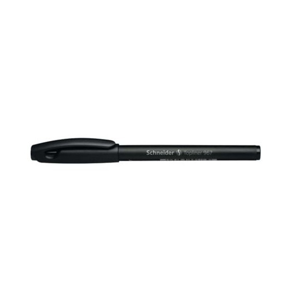 Metallgefasste, feine Kunststoffspitze, Tinte auf Wasserbasis, 6-eckiger Schaft, ventilierte Kappe in der Farbe der Tinte. Strichbreite ca. 0.4 mm.