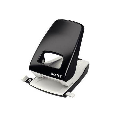 Leitz Registraturlocher NeXXt Serie 5138 schwarz aus Stahlblech, mit Anschlagschiene. Stanzvermögen ca. 4 mm (40 Blatt), für 8 cm Lochabstand, Loch Ø 5,5 mm