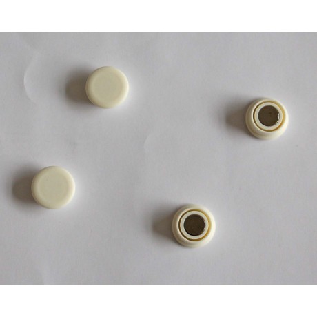 Scheibenmagnet mit Kunststoff-Gehäuse. Hält bis 12 Blatt A4 (80gm2), Haftkraft bis 1500g. / 14.7 N