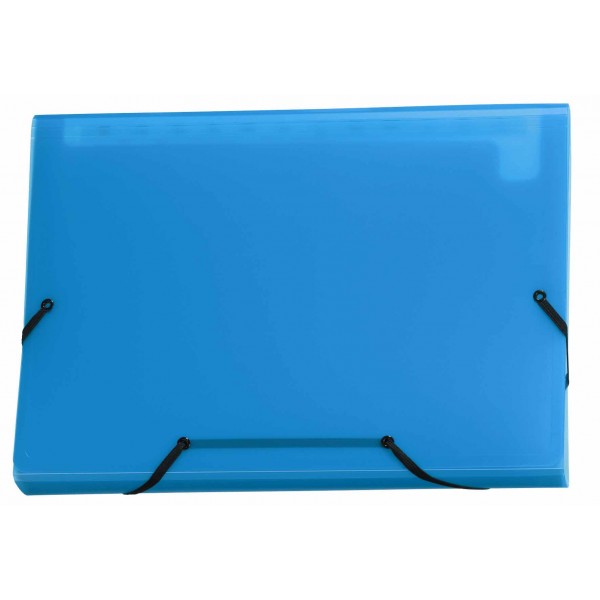 Mit 13 Innentaschen für Format A4, auswechselbaren Beschriftungs-Etiketten, Verschluss mit Gummiband. Aus transparentem Kolmaflex-Material