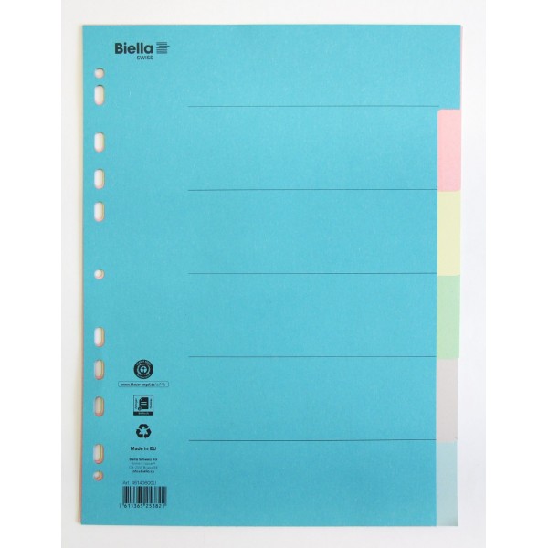 Register A4 aus Recyclingkarton farbig, 1. Blatt mit Indexdruck 200 gm2, nachfolgende Blätter 170gm2