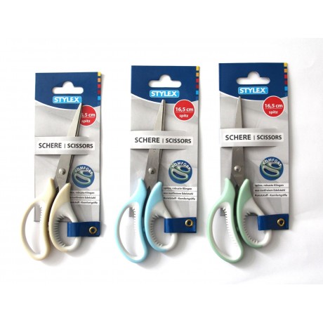Allzweckschere rostfrei mit ergonomischen, gummierten Griffen.