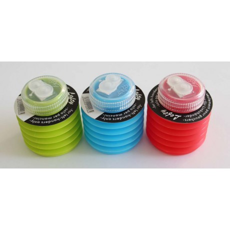 Metallspitzer, Kunststoffgehäuse mit Deckel, farbig assortiert.