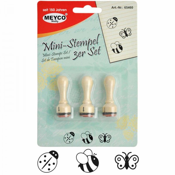 3 Motivstempel aus Holz: Marienkäfer, Biene, Schmetterling