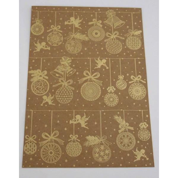 Design-Karton A4 braun, Weihnachtskugeln gold